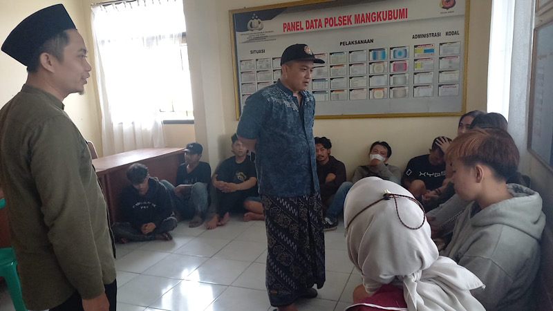 Ke 12 pasangan mesum inipun langsung di bawa ke mapolsek Mangkubumi untuk dilakukan pendataan oleh petugas.