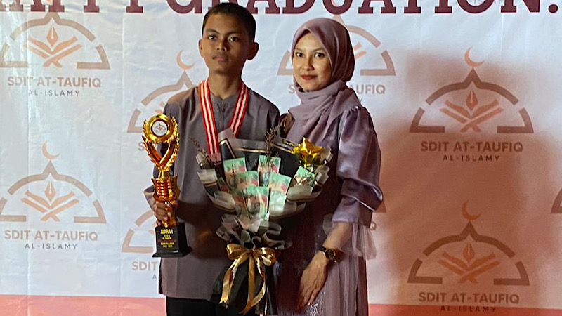 intiraya | Linda Windayani, orang tua siswa kelas 6 SDIT At Taufiq Al Islamy Kota Tasikmalaya merasa bangga, anaknya Arkanurrizky Al Hafidz menjadi lulusan terbaik di kelasnya At Thabari.