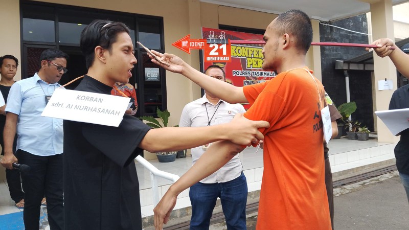 Rekontruksi yang dilakukan di halaman ruang reskrim Polres Tasikmalaya tersebut dipimpin KBO reskrim Ipda Agus Yusup SH.