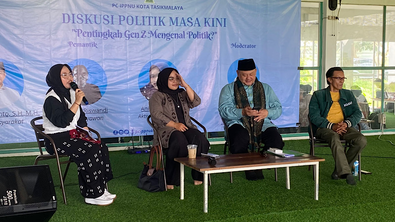 Intiraya, Tasikmalaya | Calon Wali Kota Tasikmalaya nomer urut 5, KH Aminudin, menghadiri acara diskusi politik masa kini yang digelar IPPNU Kota Tasikmalaya, di salah satu kafe di jalan Noenoeng Tisna, Rabu (10/10/24) siang.