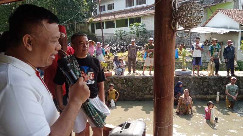 Tasikmalaya, intiraya.com | Bentuk rasa syukur atas memenangkan PSU Kabupaten Tasikmalaya, Tim Pemenangan Cecep – Asep melaksanakan Ngobyok Balong di Cisayong, Jumat 25 April 2025.