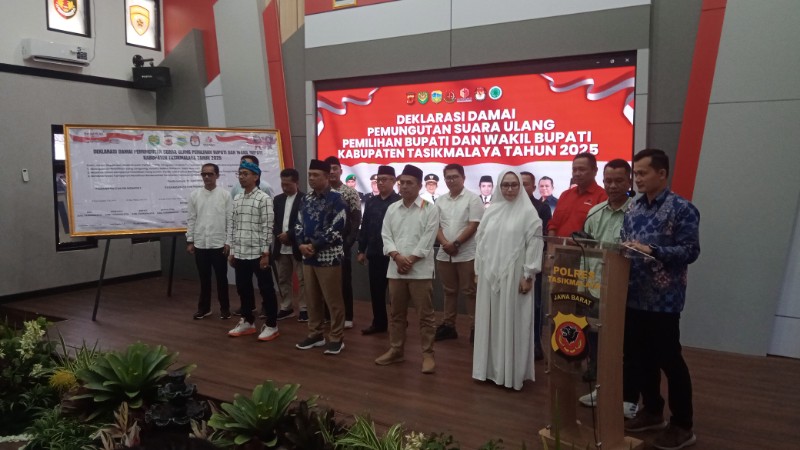 Kesepakatan tersebut dideklarasikan bersama unsur Forkopimda, KPU Bawaslu serta tokoh agama Kabupaten Tasikmalaya.